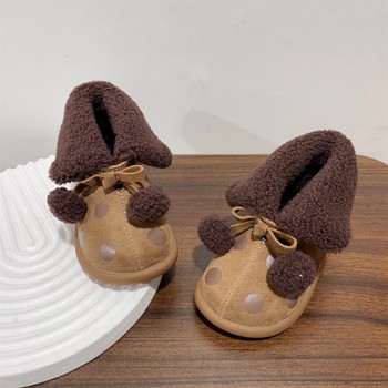 2025 הסיטונאי בוטיק קוריאני עיצוב ילדים של פולקה נקודה מגפי שלג עם פרווה מרופדת פרווה מרופדת חורף מגפיים חמים