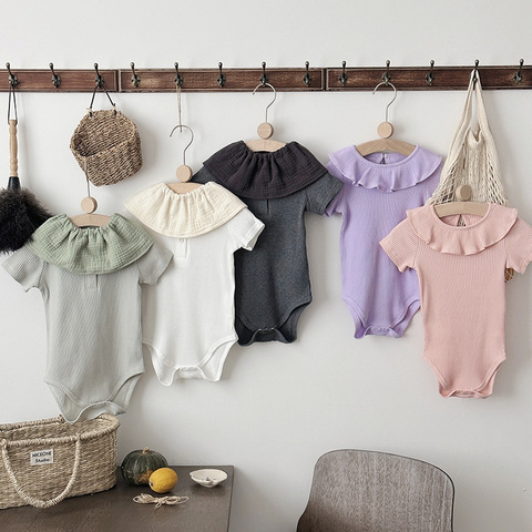 บอดี้สูทผ้าฝ้ายถักสำหรับทารกแรกเกิด, บอดี้สูทผ้าฝ้ายเนื้อนุ่มระบายอากาศได้ดีสีพื้นสำหรับคลาน