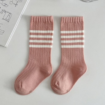 ถุงเท้ายาวสำหรับเด็กถุงเท้าผ้าฝ้ายลายทางสีทึบถุงเท้าผ้าคอตตอนทันสมัยและให้ความอบอุ่น