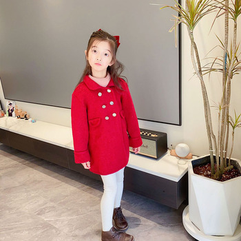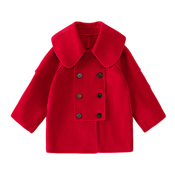 Pakaian wol anak perempuan, mantel panjang setengah panjang merah besar musim semi dan gugur 2023